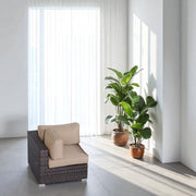 - Built to Last: Rustproof aluminum inner frame wrapped in UV-, mold-, and mildew-resistant HDPE wicker.