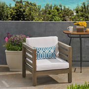 Outdoor Club Chair, Acacia Wood Patio Chair With Fabric Cushion For Backyard, Garden Or Porch - Gray / White