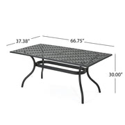 Outdoor Aluminum Dining Table With Lattice Design And Center Umbrella Hole - Black