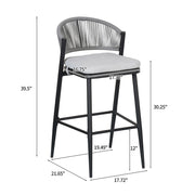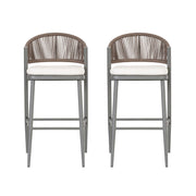 Outdoor Bar Height Metal Frame Counter Stools With Scallop Shaped Backrest & Water Resistant Cushions (Set of 2) - Matte Gray