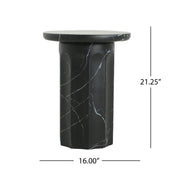 Outdoor Lightweight Concrete BMarble Effect Side Table, Living Room End Table - Black / Marble