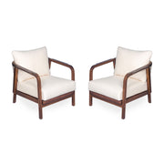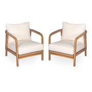 Wooden Outdoor Lounge Chair Set With Woven Backrest And Cushions - Teak