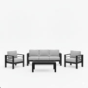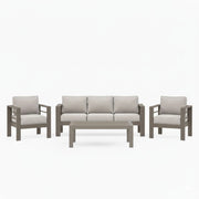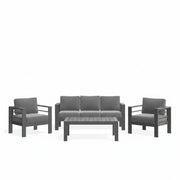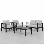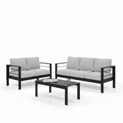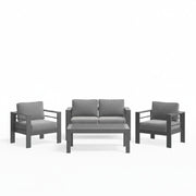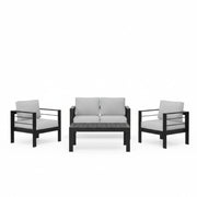 4 Piece Patio Conversation Set With Cushions And Powder Coated Frames, Loveseat, Armchairs, Coffee Table - Light Gray