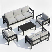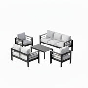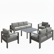 5 Piece All Weather Patio Furniture Set, Cushions And Coffee Table - Gray