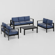 5 Piece Patio Set With Cushions, 7 Seat Outdoor Sofa With Coffee Table - Blue