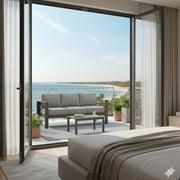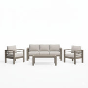 3 Piece Patio Set With Cushions And Coffee Table - Light Gray