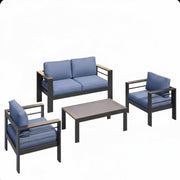 4 Piece Patio Conversation Set With Cushions, Powder Coated Frame, Coffee Table - Blue