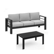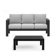 2 Piece Outdoor Patio Set, 3 Seat Sofa With Thick Cushions And Coffee Table - Black / Gray