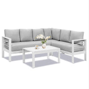 4 Piece Sectional Patio Set With Cushions, 7 Seat Outdoor Sofa With Coffee Table - Gray / White