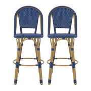 Outdoor Rattan And Aluminum French Barstools Set - Navy Blue