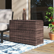 - Durable Construction: The table features a slim, rectangular frame made from powder-coated aluminum, wrapped in -hued resin wicker, providing a coastal aesthetic while ensuring durability.