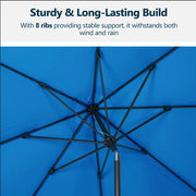 Market Patio Umbrella With Crank Lift And Tilt Ribs, UV Resistant Canopy For Pool - Blue