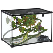 Pawhut - 14 Gallon Reptile Glass Terrarium Tank With Decor Kit Breeding Box Full View With Visually Appealing Sliding Screen Top For Lizards Frogs Snakes Spiders - Black