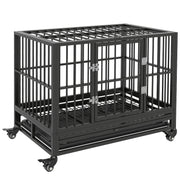 Pawhut - 36" Heavy Duty Dog Crate Metal Cage Kennel With Lockable Wheels, Double Door And Removable Tray - Gray