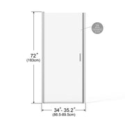 - Adjustable Width: The door measures 34 W x 72 H with an adjustment range from 34 to 35.2, fitting various shower spaces