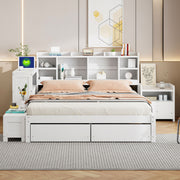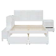 Full Size Platform Bed With Multi Functional Storage Space, Nightstand, 2 Drawers, USB Ports And Desk - White
