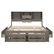 King Size Platform Bed With Storage Headboard And 8 Drawers - Gray