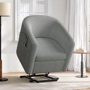 Power Lift Recliner Barrel Shape Reclining Chair With Footrest And Side Pocket - Gray