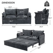 73.6" Pull Out Sofa Bed, 3 In 1 Corduroy Convertible Sleeper Sofa Couch, Side Storage, And USB / C - Type Charging Ports Chair For Living Room, Bedroom, Apartment - Gray