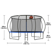 Pumpkin 14 Ft Outdoor Trampoline With Basketball Hoop Enclosure Net Ladder And Metal - Black / Blue