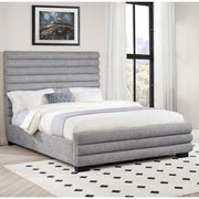 Queen Bed With Textured, And Tufted Headboard - Gray