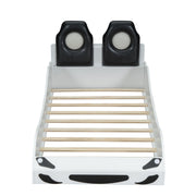 Race Car Shaped Twin Platform Bed With LED Lighting And Upholstered Backrest Construction - White