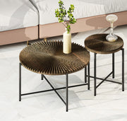 Radial Pattern Coffee And End Table Set (Set of 2) - Natural Wood / Brown