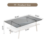 Rectangle Coffee Table, Tempered Glass Tabletop With White Metal Legs, Modern Table For Living Room - Gray