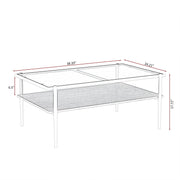 Rectangle Coffee Table With Tempered Glass Top, Modern Table For Living Room - Gray / Black