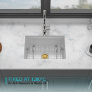 Rectangular Deep Single Bowl Kitchen Sink, Undermount Top Mount Porcela Stainless Steel Grid - White