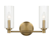 Regal - Double Light Vanity With Clear Ribbed Satin - Antique Brass / Clear