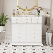 36'' Bathroom Vanity With Sink Storage Cabinet, 2 Drawers & Soft-Closing Doors - White