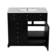 36'' Retro Bathroom Vanity With Sink Storage Cabinet, Freestanding With 2 Drawers & Soft-Closing Doors - Black
