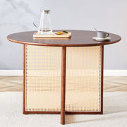 Retro Round Table With Imitation Rattan Rubber Wood - Walnut