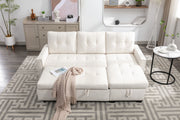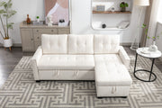 Reversible Sectional Storage Sleeper Sofa Bed, L-Shape 2 Seat Sectional Chaise With Storage, Skin-Feeling Velvet Fabric - Beige