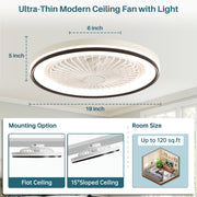 RGB Dimmable LED Bladeless Ceiling Fan With Remote Control, Flush Mount - White