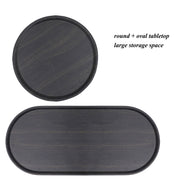 Round Coffee Table With Storage Tray 2 Tier Oval End Tables Wooden Small Side Table For Living Room - Black