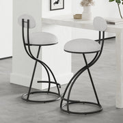 Round Print Bar Stools (Set of 2) Metal Upholstered Chairs For Kitchen Island & Dining Rooms - Black & White Print