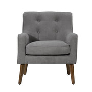 - The Ryder armchair is a classic furniture piece. Featuring a button tufted back rest, recessed arm rest, and walnut tapered wooden legs. This armchair is very comfortable with the durable soft fabric and full foam seat cushion. Ideal for any living space whether it be for your bedroom, living room, or office space for you or your guest to enjoy. Also available in other colors to complement your home dcor.