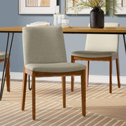 - Set of 2 dining chairs featuring a Scandinavian-inspired design with clean lines and a minimalist silhouette.