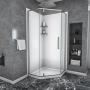 Semi Frameless Neo Angle Hinged Shower Enclosure With Clear Tempered Glass - Brushed Nickel