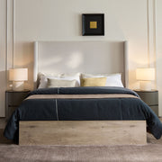 Shelton - Queen Upholstered Wingback Bed With 54" High Headboard - Ivory / Light Gray / Camel Oak