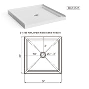 Shower Base Centered Drain Single Threshold Shower Pan - White