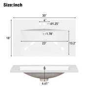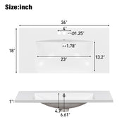 36" Single Bathroom Basin Sink Vanity Top Only With 3 Faucet Holes - White