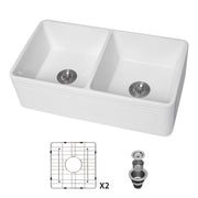 Sink 33" Double Bowl Apron Front Kitchen Sink 50 / 50 - White