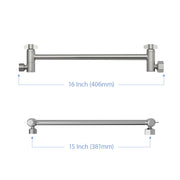 16" Extending Shower Arm, Adjustable Height - Chrome