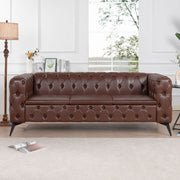 84.06" Width Traditional Square Arm Removable Cushion 3 Seater Sofa - Dark Brown