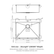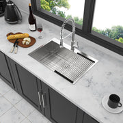 Modern 28" Drop In Kitchen Sink With Single Bowl In Durable 16 Gauge Stainless Steel - Brushed Nickel