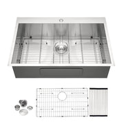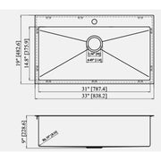 33" Drop In Kitchen Sink, 16 Gauge T304 Single Bowl Sink - Brushed Nickel