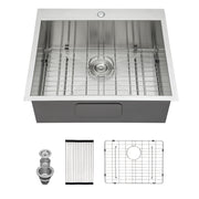 Laundry Utility Sink Drop Topmount, Deep Single Bowl Kitchen Sink - Brushed Nickel
